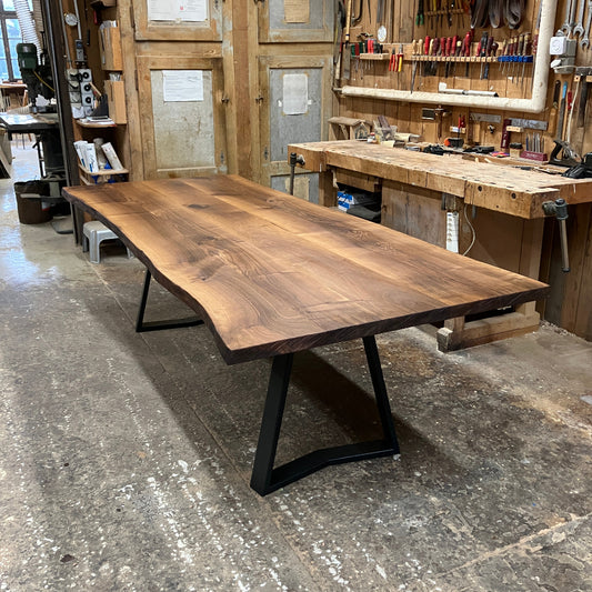 Esstisch aus Schweizer Nussbaumholz mit Naturkanten